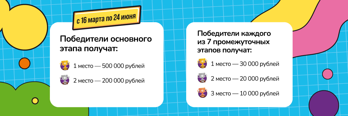 Победители основного этапа (16 марта – 24 июня) получат: