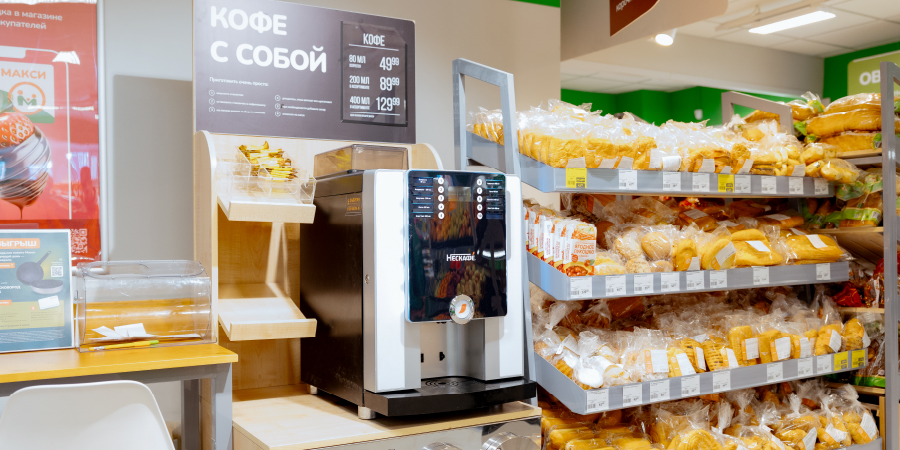 Вы можете выпить у нас кофе и разогреть в микроволновой печи готовые блюда или выпечку. Для вашего удобства работают кассы самообслуживания.
