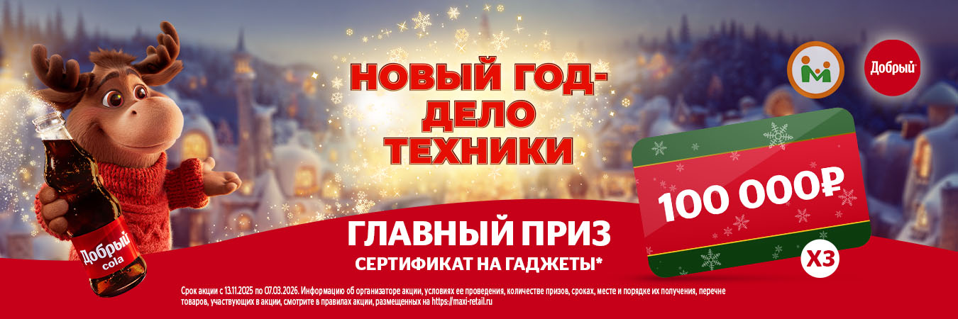 Акция действует во всех магазинах «Макси» с 24.11.25 г. и до момента окончания скретч-карт, но не позднее 26.01.26 г. Количество подарков и товаров ограничено.